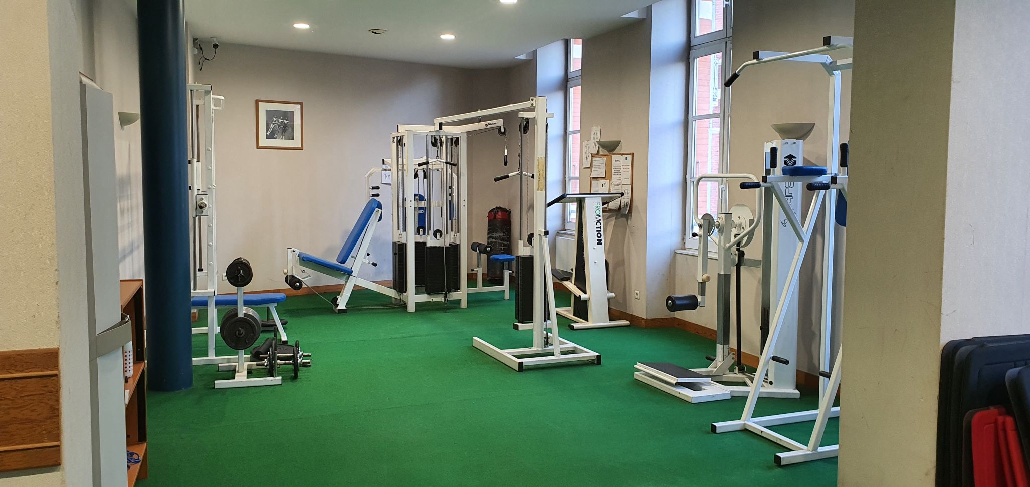 La salle de sport est largement dotée d'appareils de musculation et de fitness.